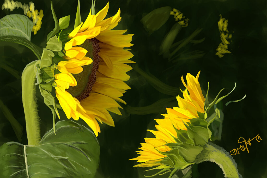 “Sunbeams Siblings” by Abhik De brings the joy of sunflowers into your home, with two striking blooms facing each other in perfect harmony. A must-have for sunflower art painting enthusiasts, this piece is a delightful addition to any space, offering warmth and vibrant energy.